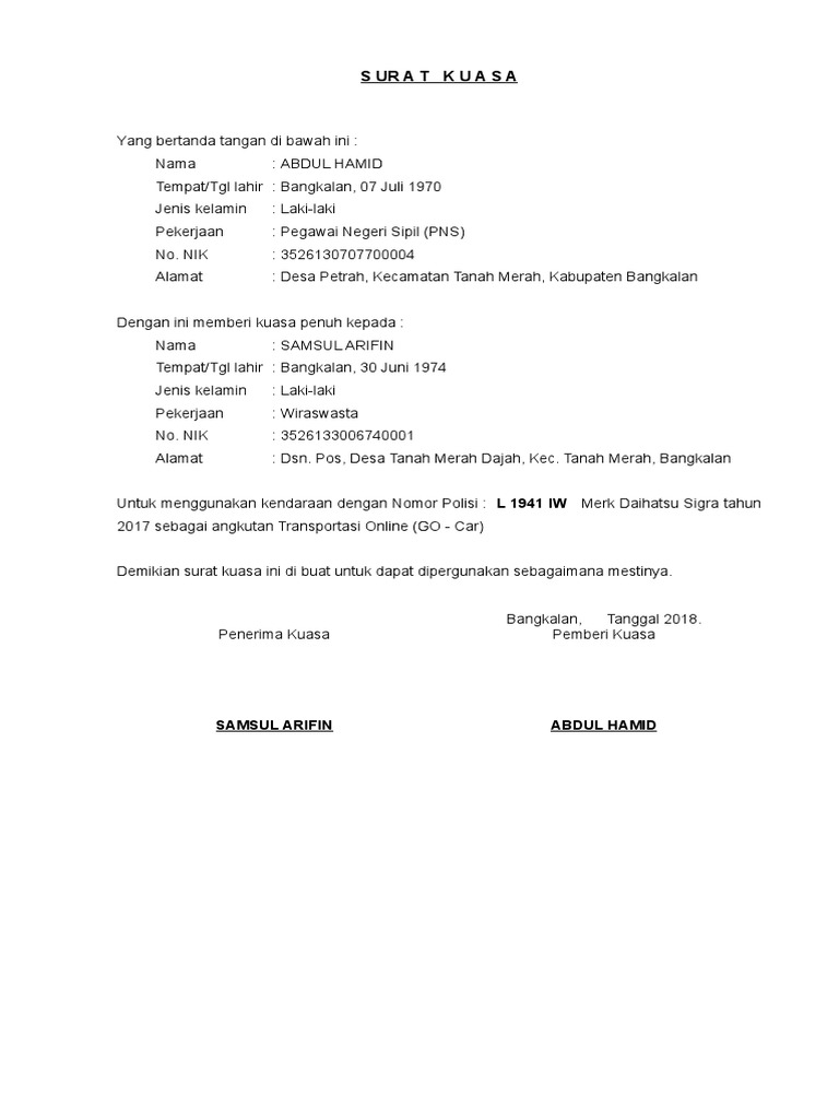 Contoh Surat Kuasa Daftar Grab Jika Nama Ktp Berbeda Dengan Nama Stnk Atau Motor Jaman Denianggoleta